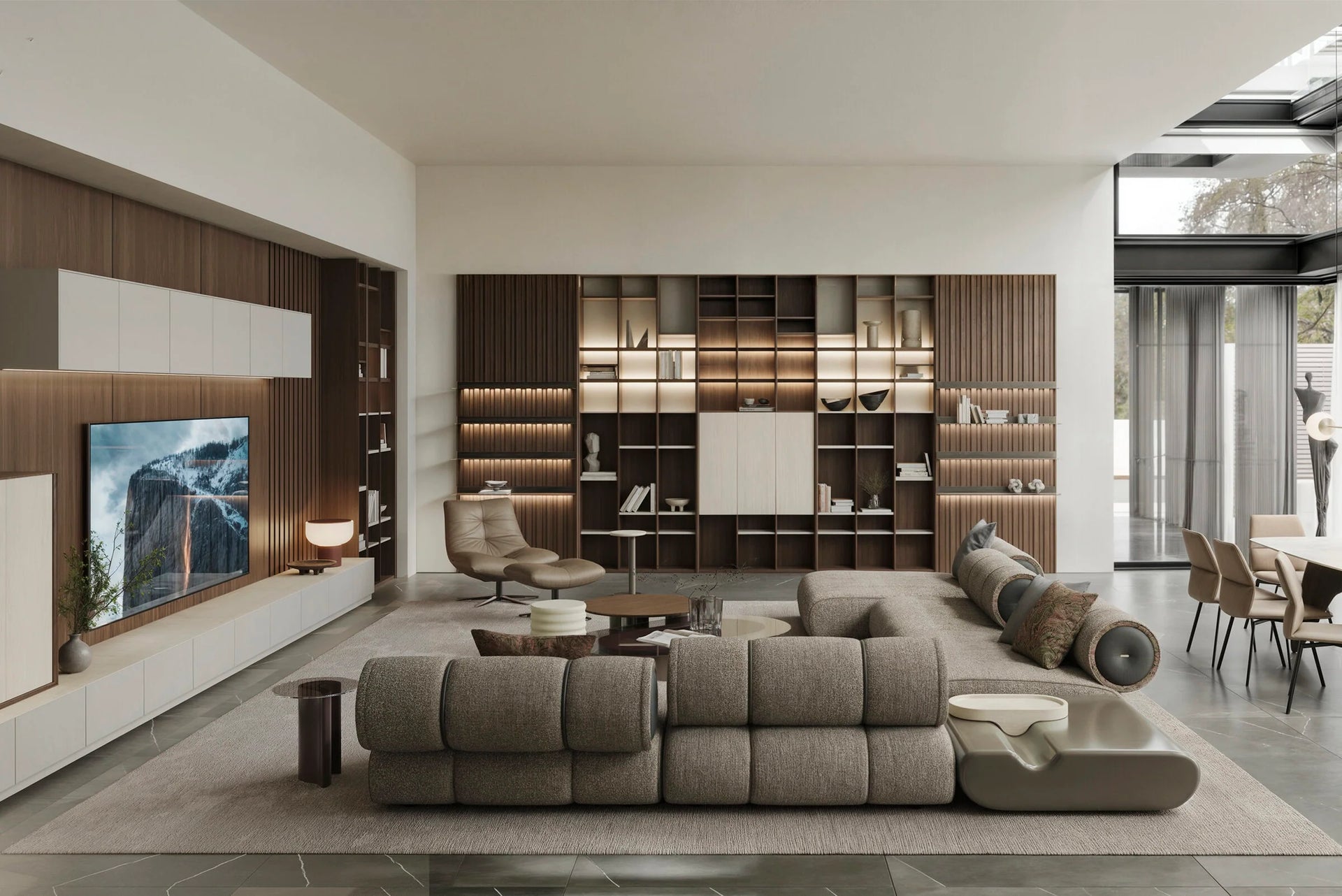 and the sculptural shapes of the modern furnitures designed by Cattelan Italia